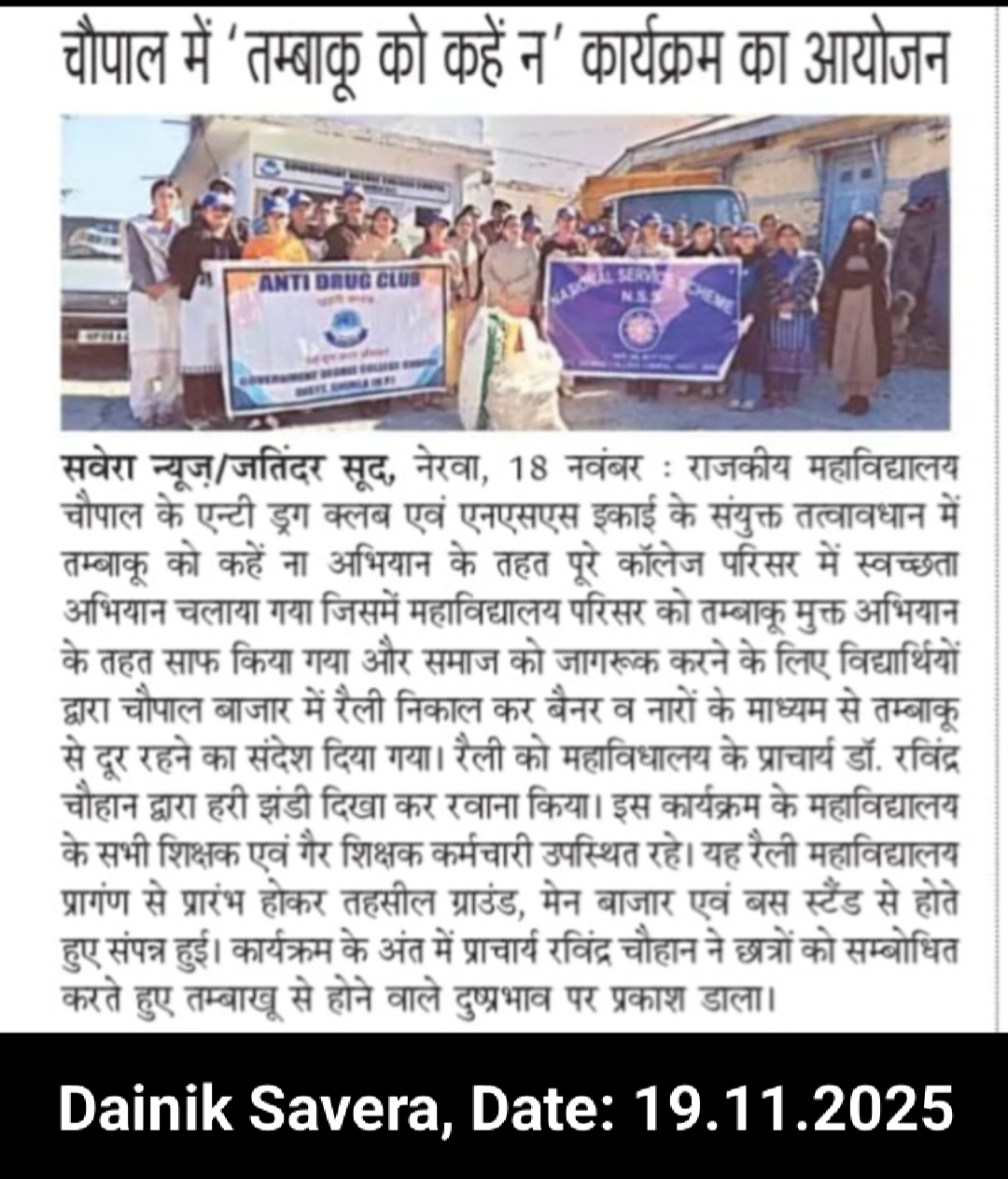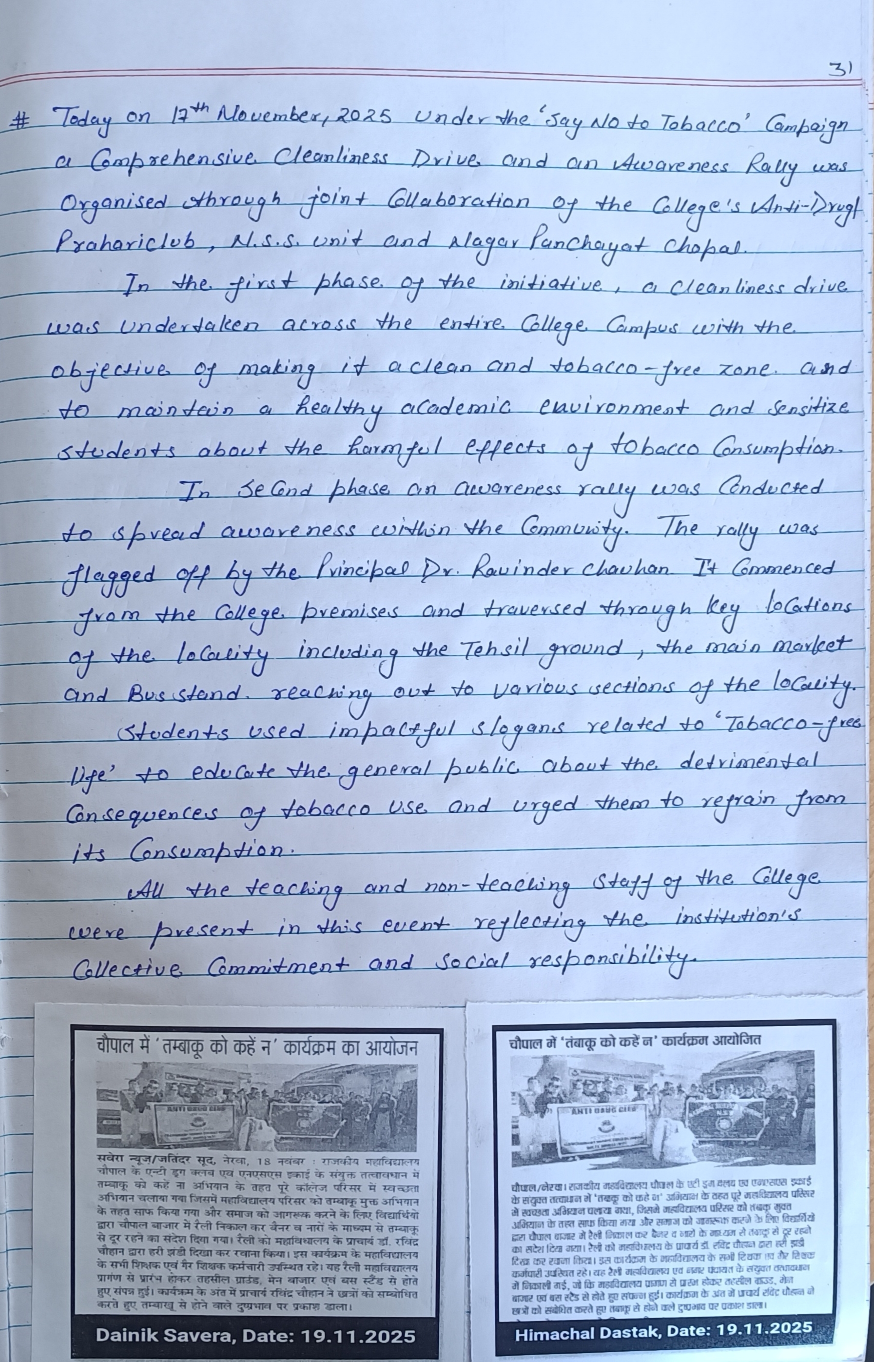 Cleanliness Drive & Awareness Rally on Harmful Effects of Tobacco