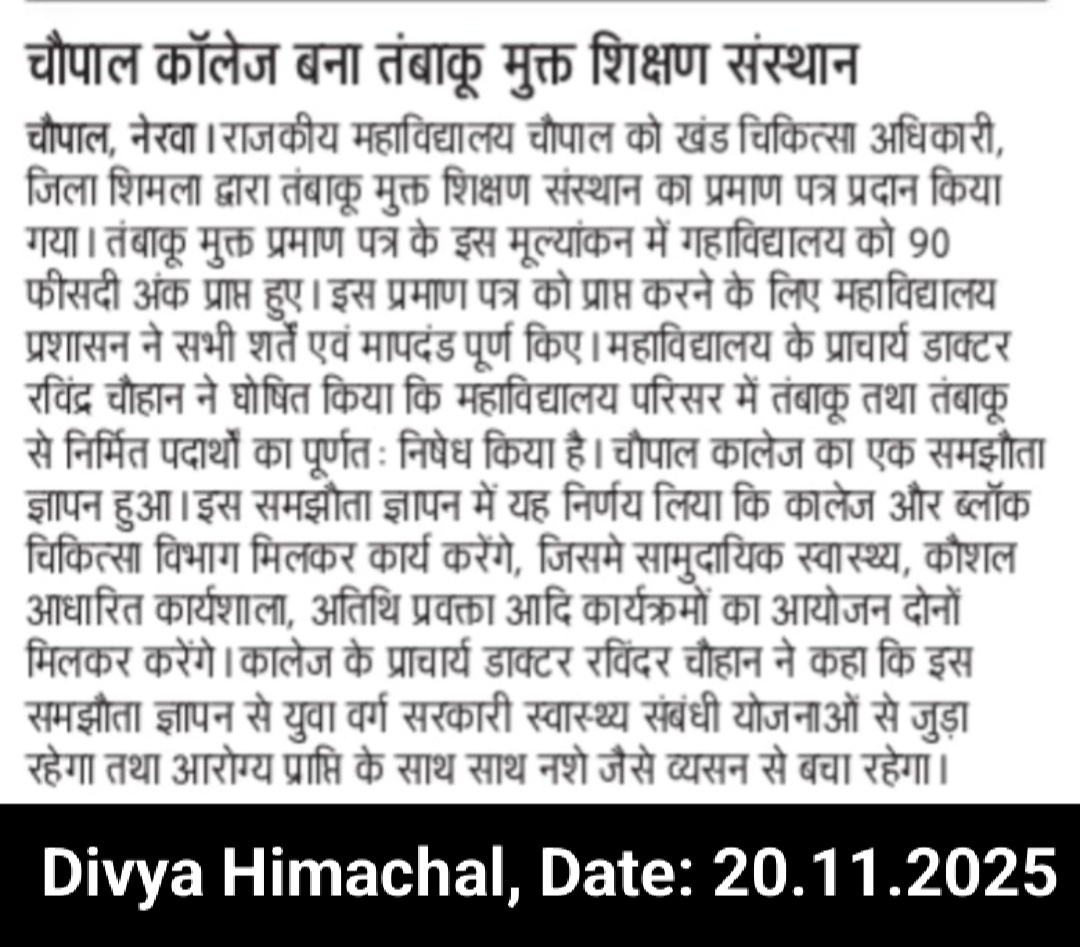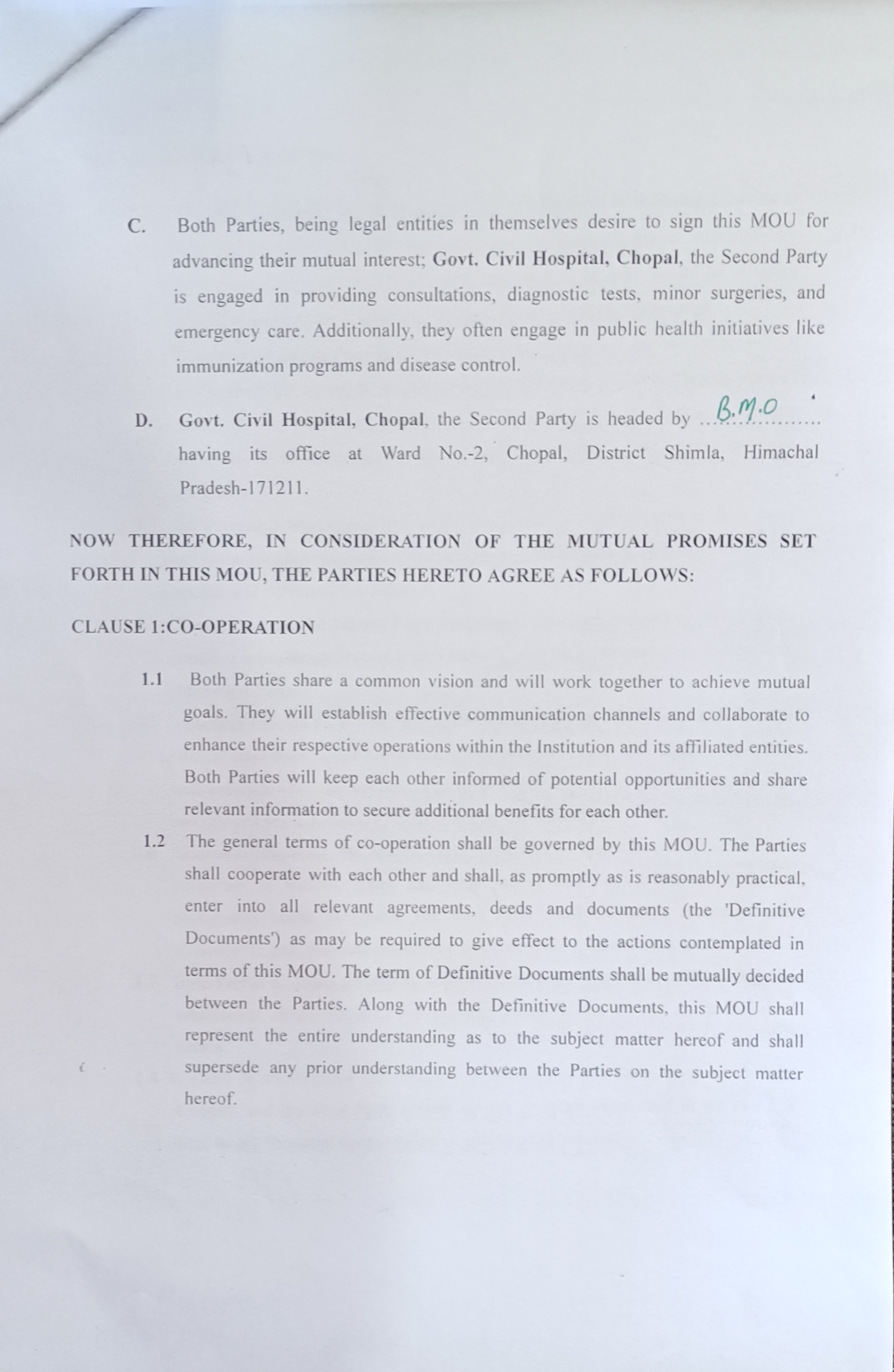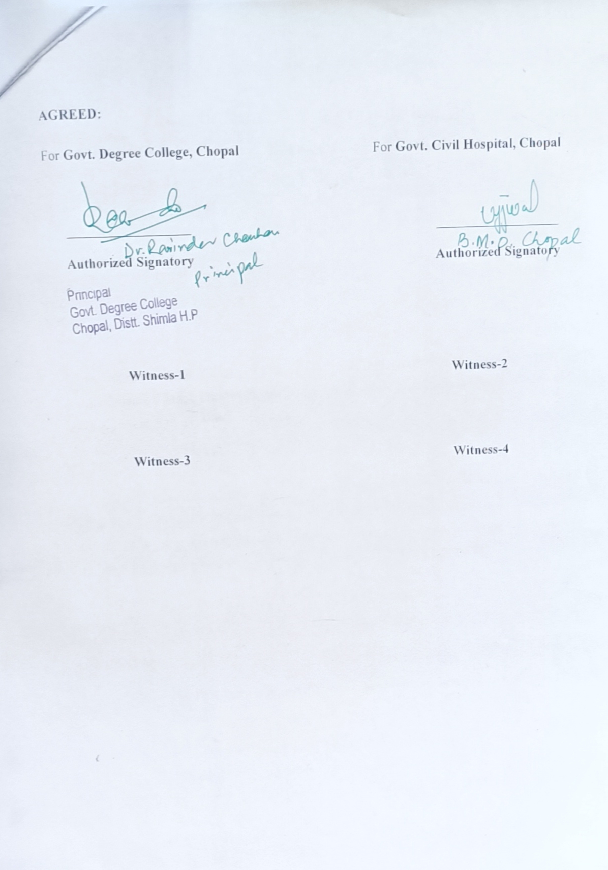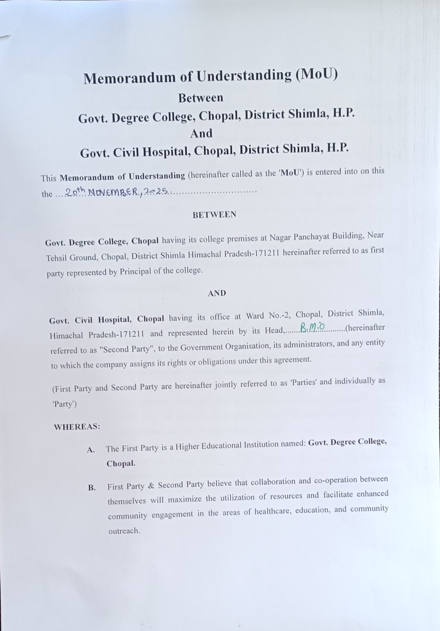 MOU Between GDC Chopal & Civil Hospital Chopal