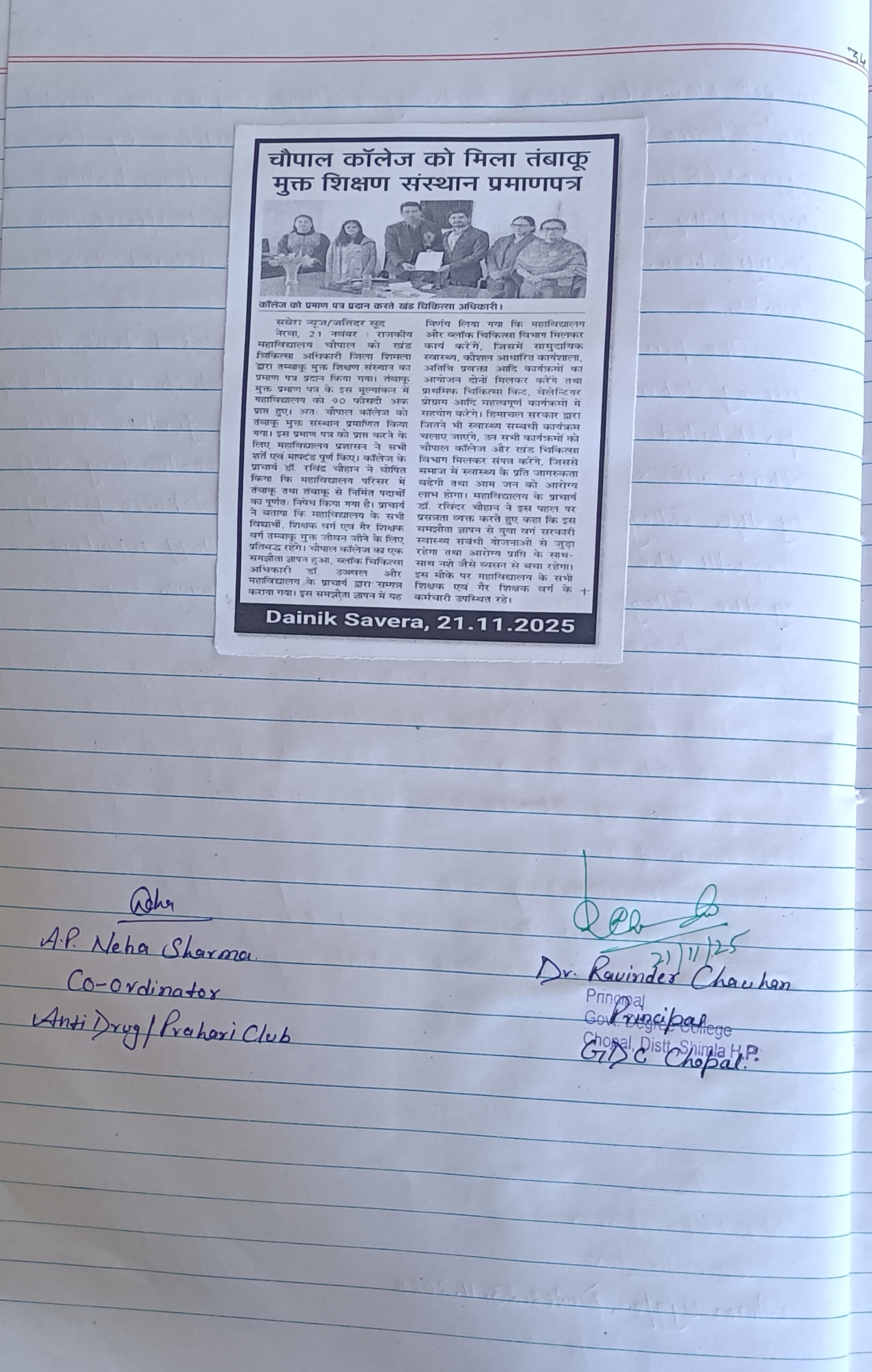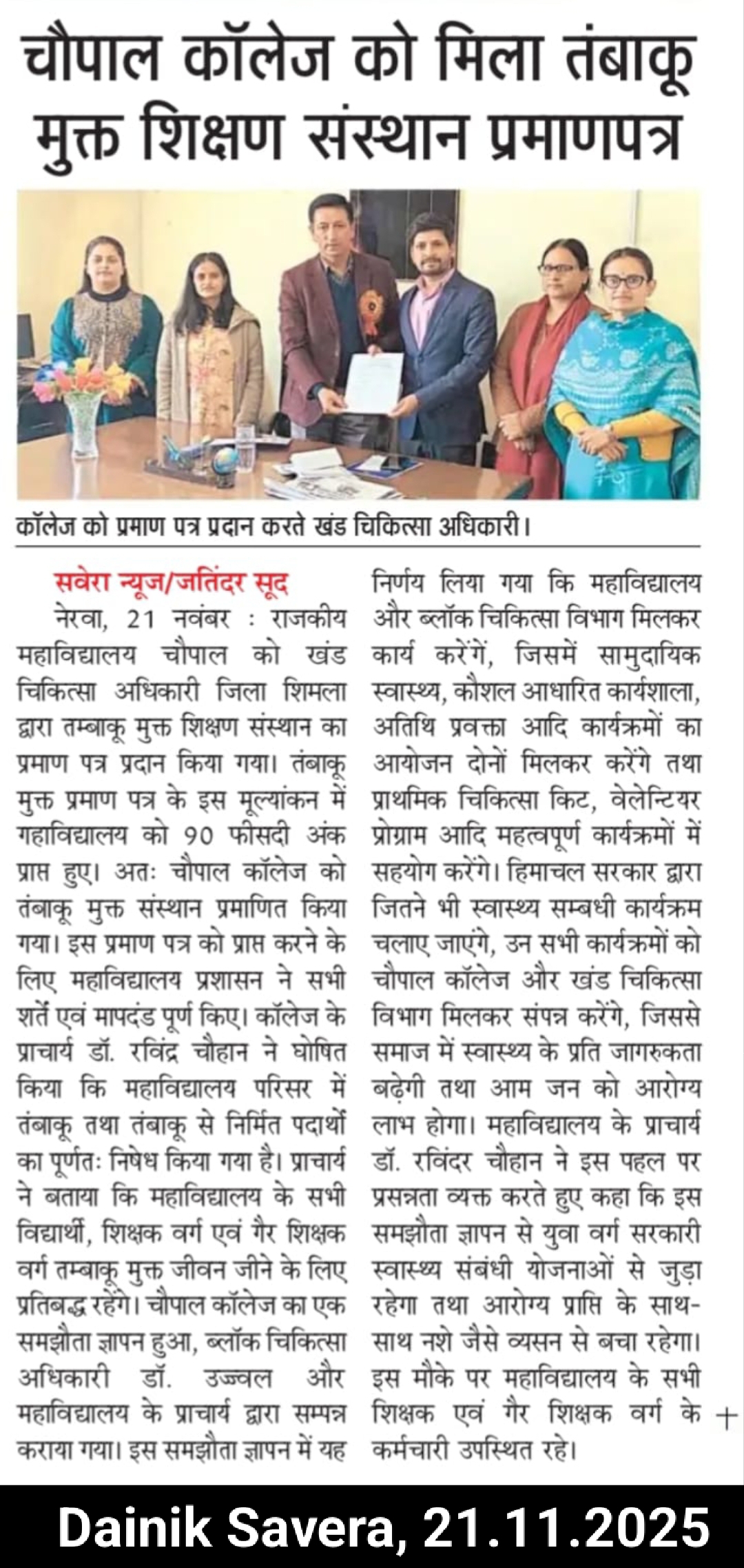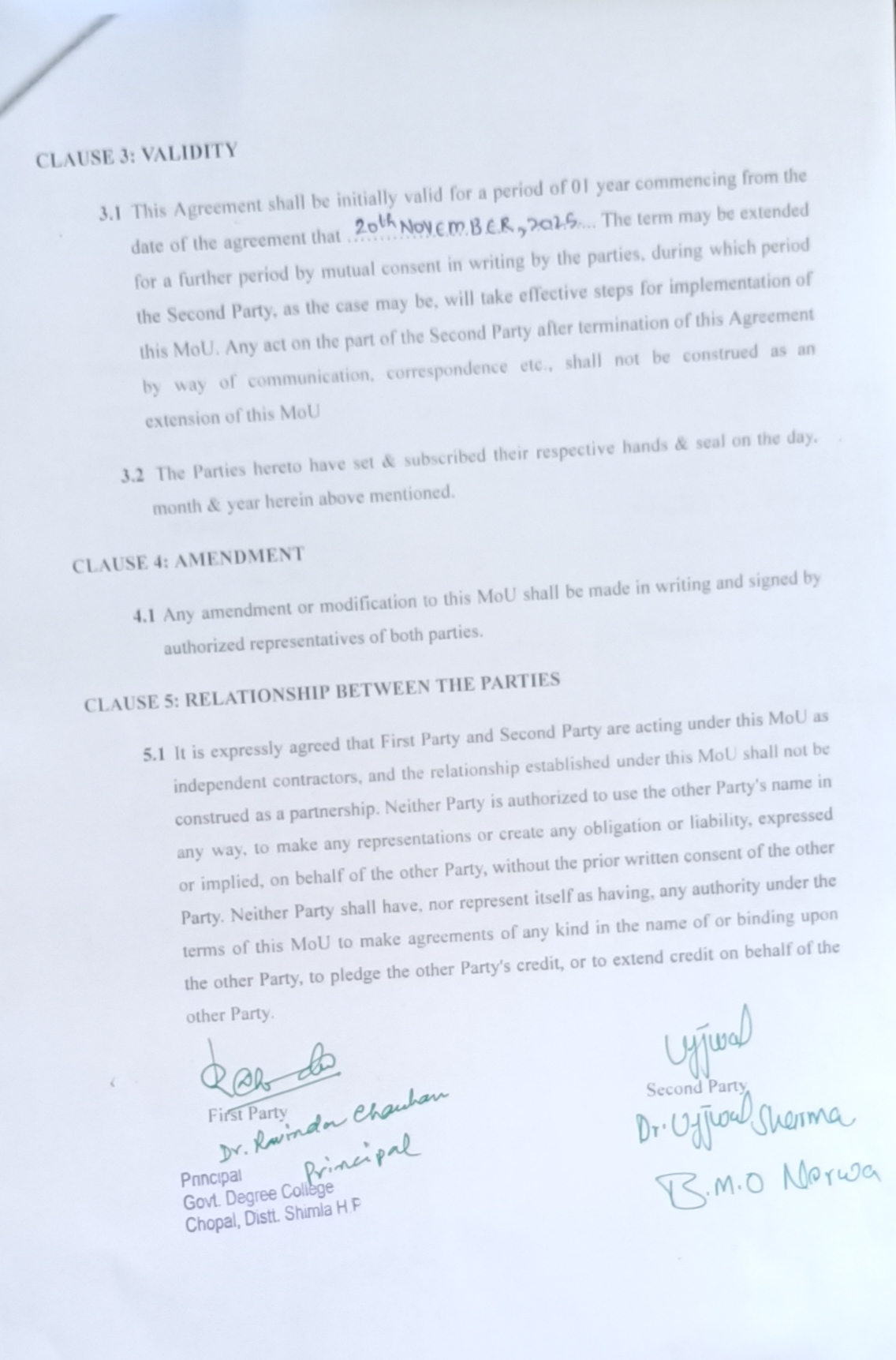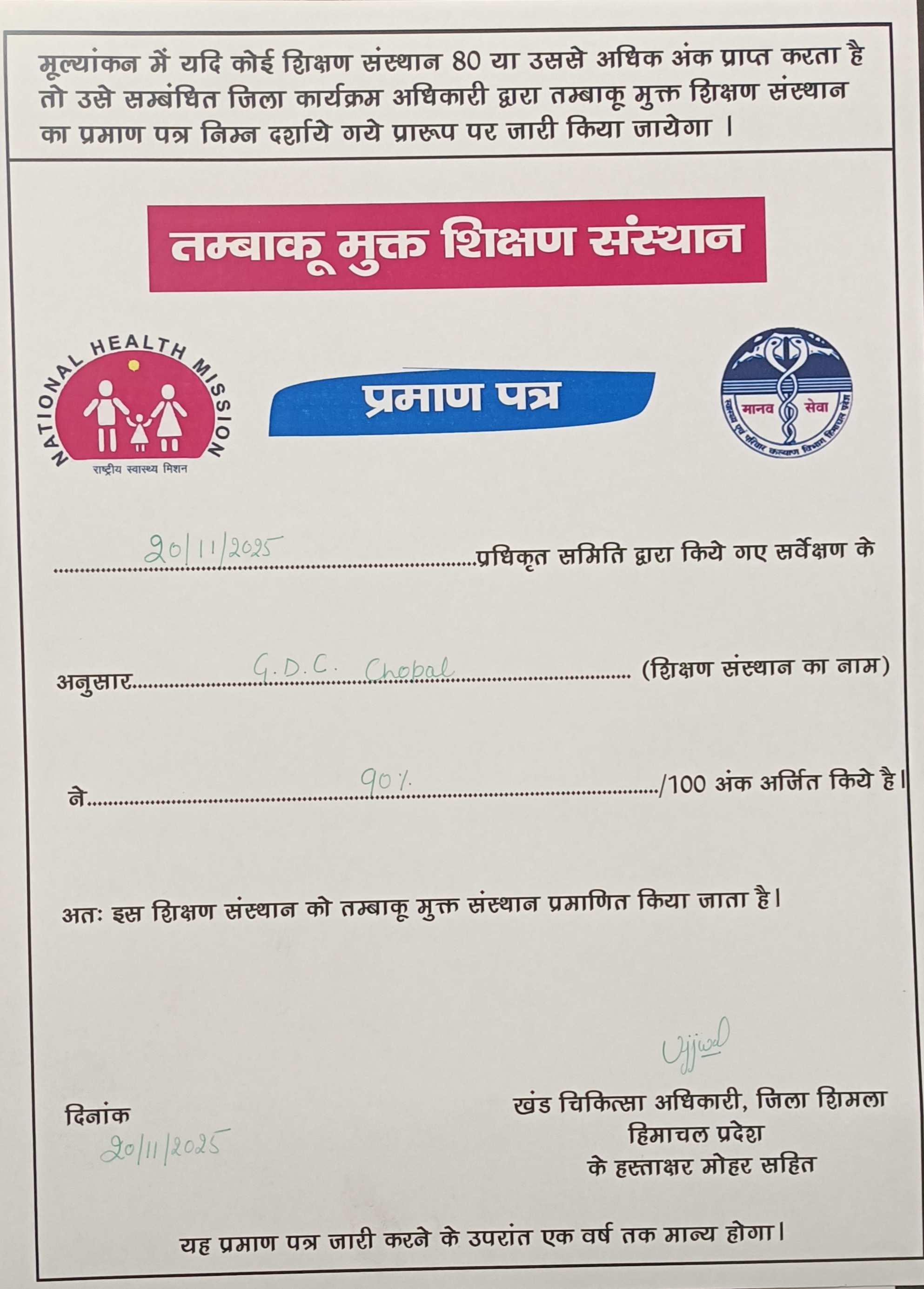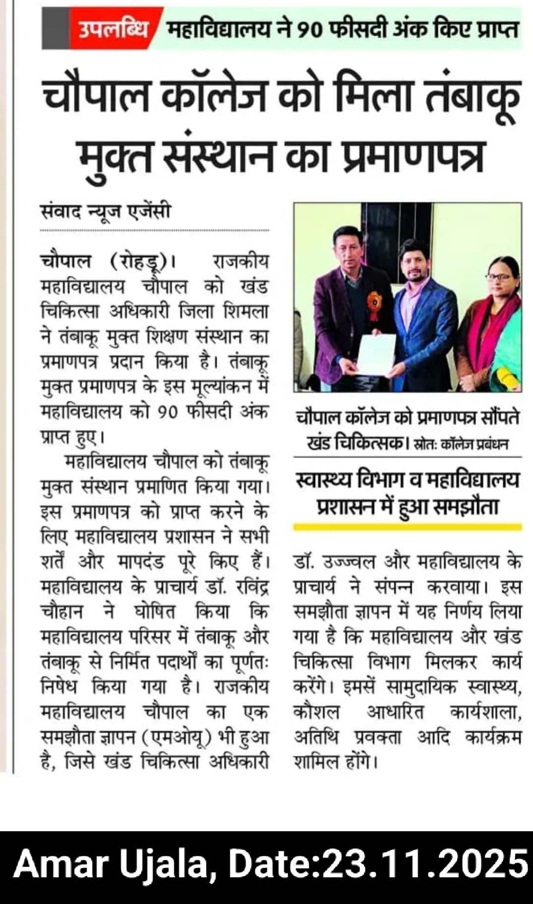 MOU Between GDC Chopal & Civil Hospital Chopal