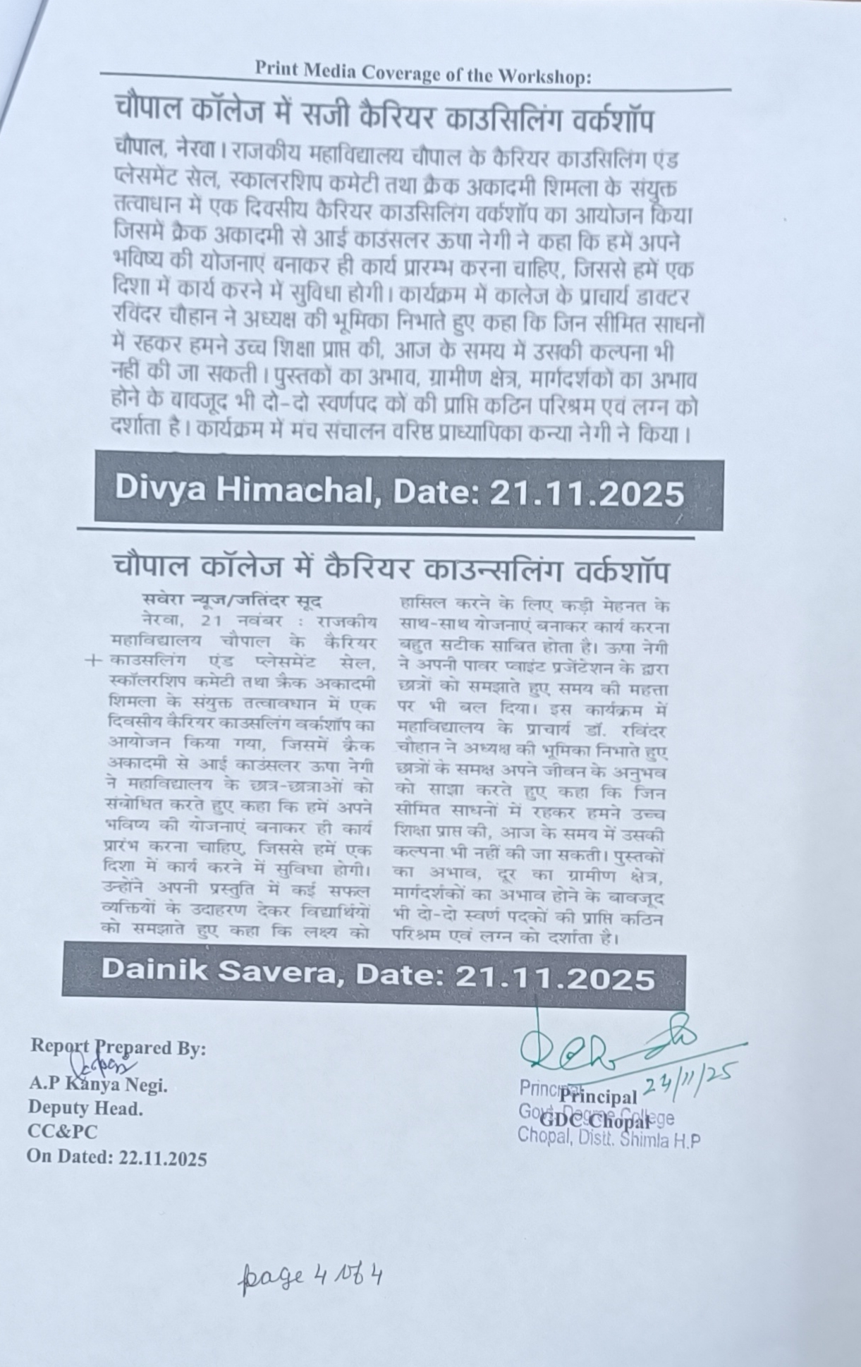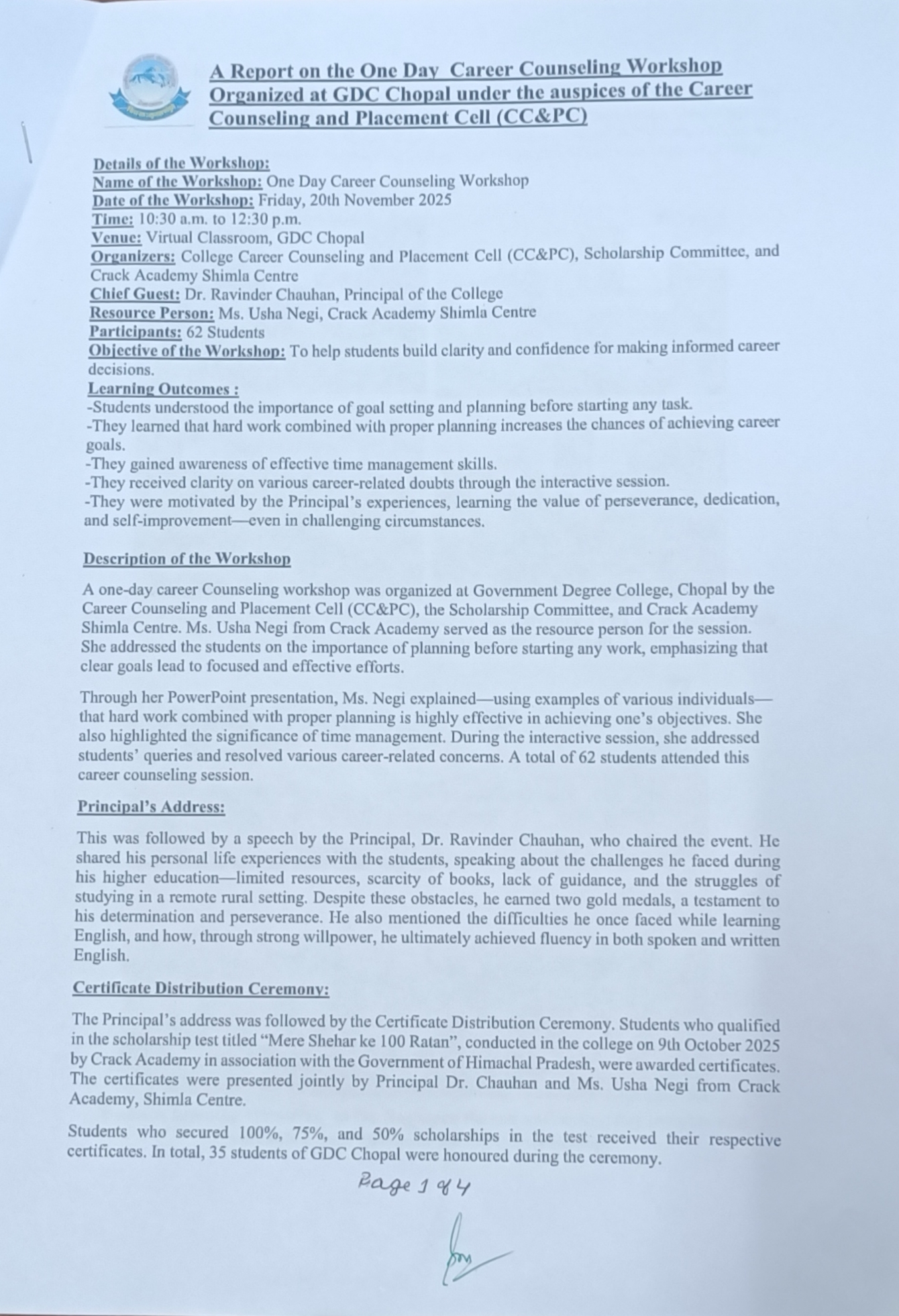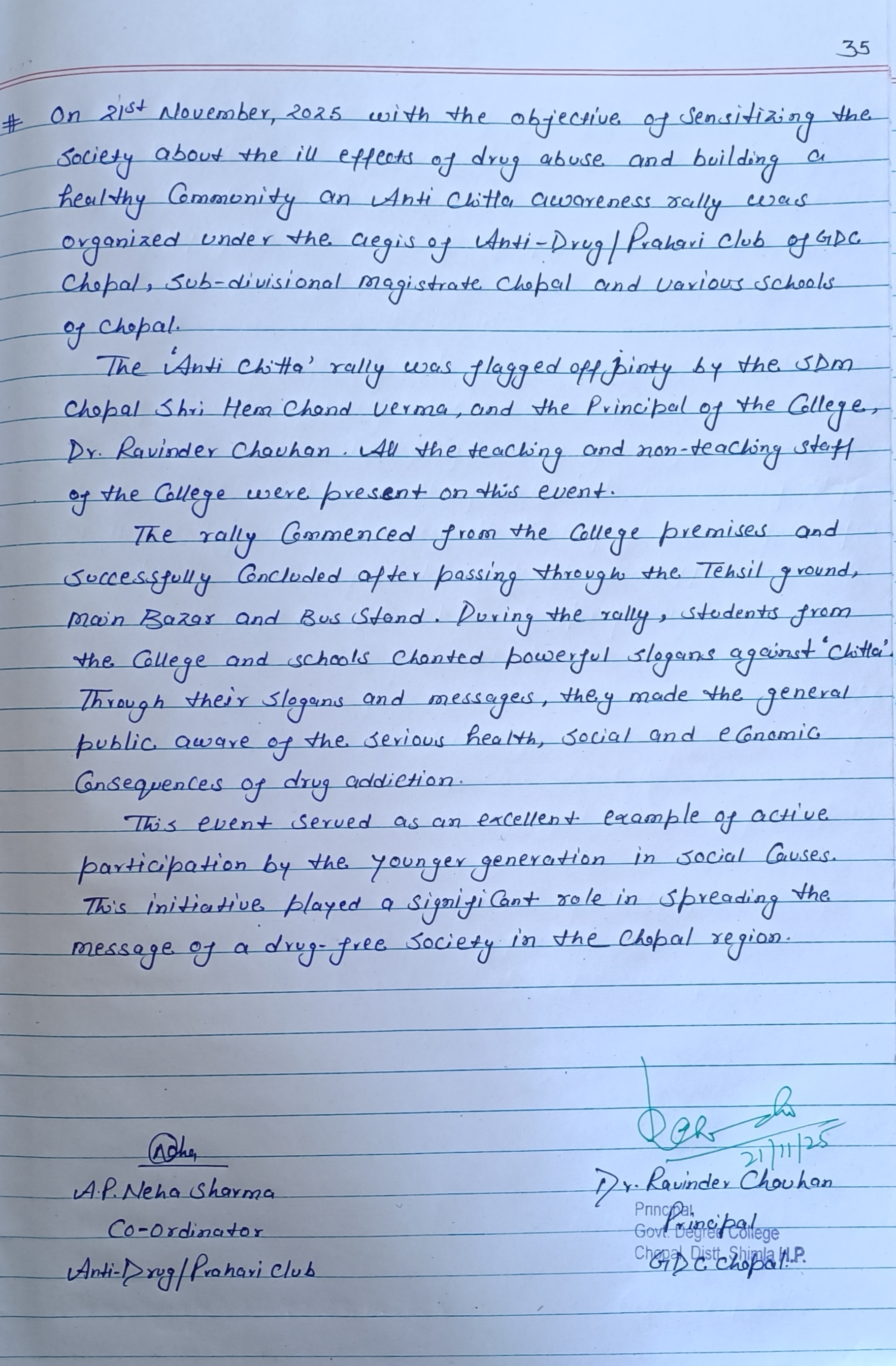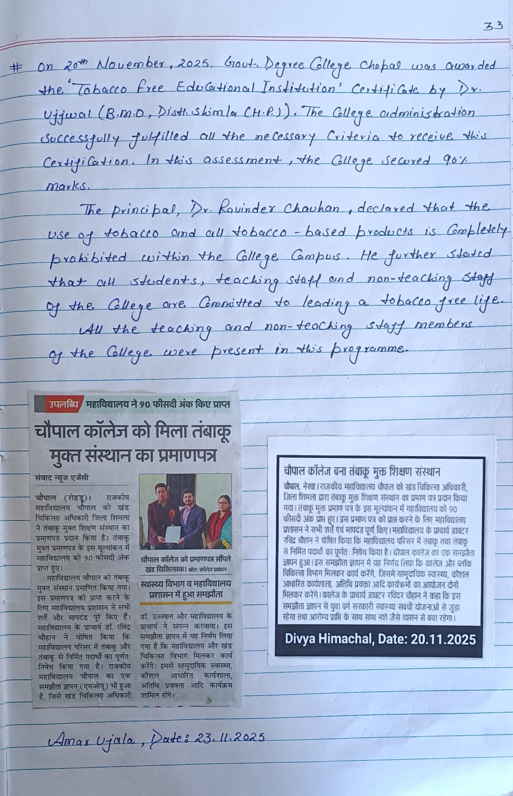 MOU Between GDC Chopal & Civil Hospital Chopal