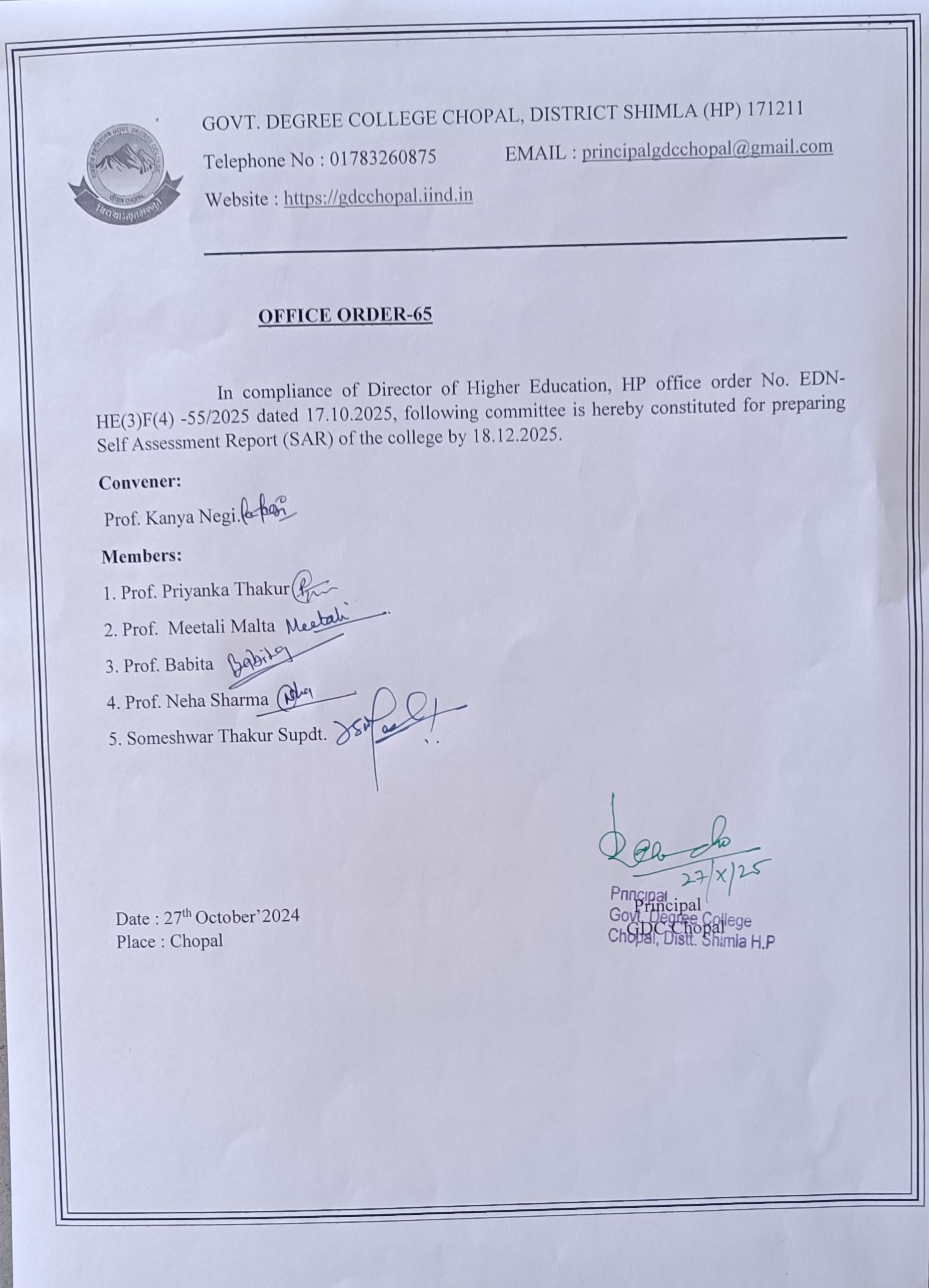 Constitution of Committee for SAR(Self Assessment Report) 2025-26